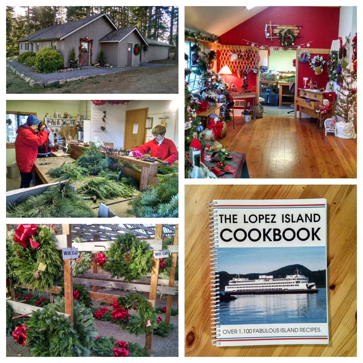 It takes a big community to get those wreaths made every year. In addition to a team of cutters, Ed has built a large network of Lopez property owners, who let the association trim their pine and fir trees. Over a period of more than a month, truckloads of branches are delivered to the Cemetery workshop, where a team of wreath builders make the most elegant wreaths you’ve ever seen. Starting the day after Thanksgiving, the wreaths and other Christmas decorations go on sale. So, if you’re on Lopez over the holidays, you must stop in – to of course buy a wreath, but also to learn some Lopez lore. Oh, and if you want to join me green gathering next year, call Ed. Or, have my mom volunteer you.