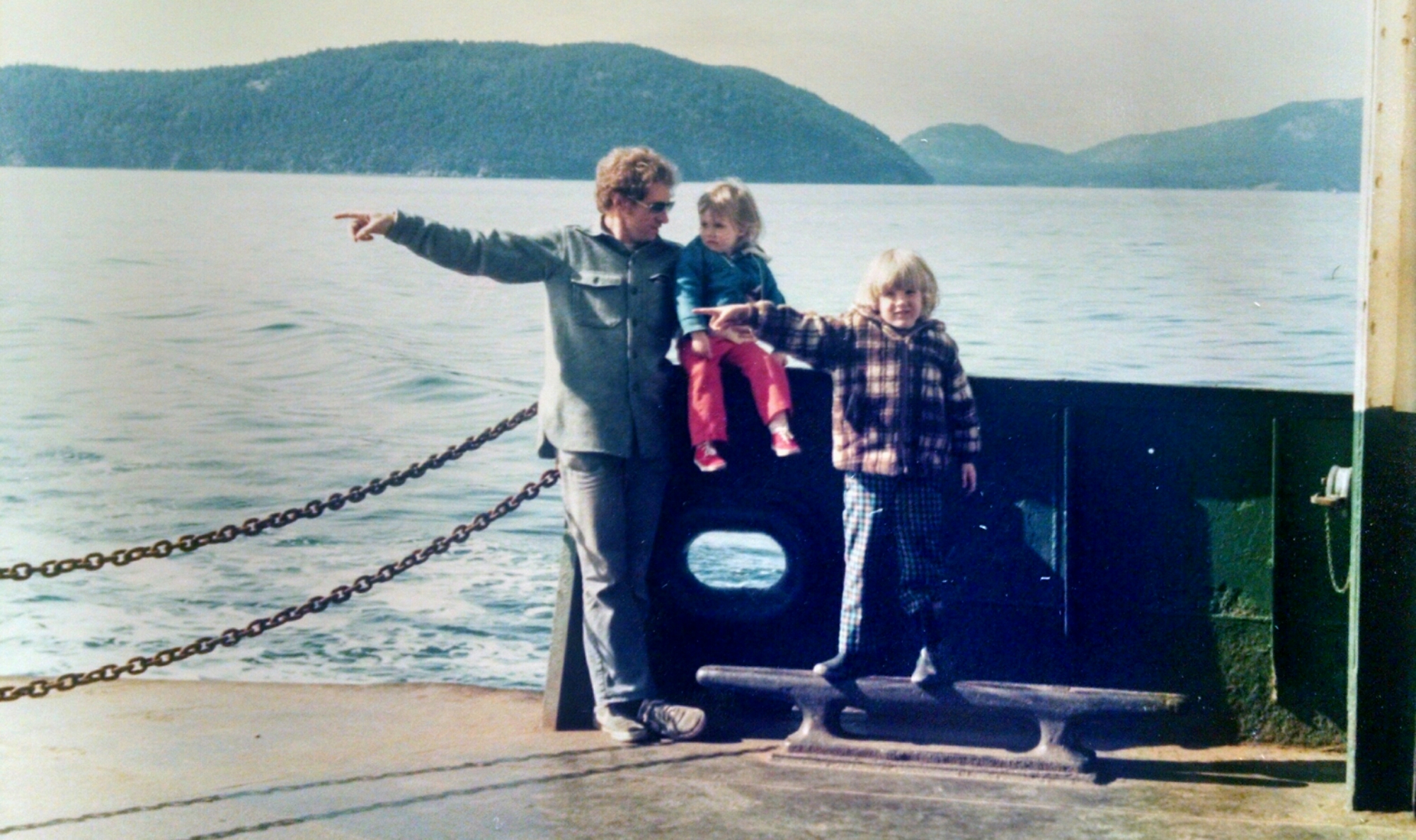 Robin, Matt and Ingrid at the Lopez ferry landing in 1978