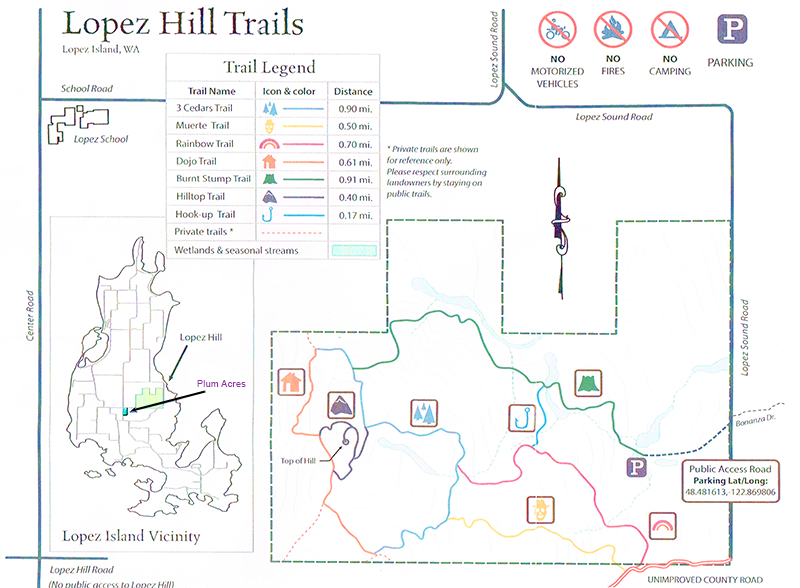 Between LCTN, the Land Bank and Friends of Lopez Hill, there appears to be some momentum building for the permanent purchase of this property. Ultimately, if these lands are to be preserved in perpetuity, it’ll take the effort of the entire community. If you’ve never been to Lopez Hill or Odlin Park South, I encourage you to spend a few hours getting lost there. If you want to learn more, check out the information on the FOLH and LCTN web sites. And, if you want to join the cause to take the Hill, send an email to Kirm Taylor (info@LopezTrails.org) or call 468-2474.